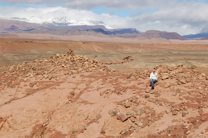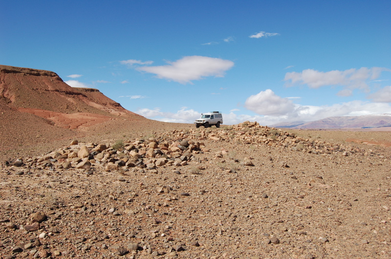 31°07,85’N - 06°51’W. Après avoir passé l'assif n'Ougni, tumulus à flanc de jebel, à gauche de la piste.