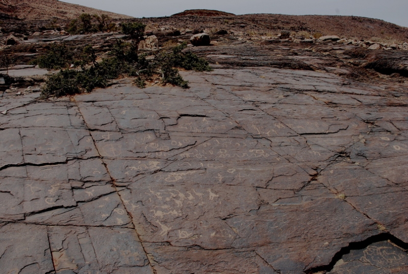 Les gravures s’étendent sur 160 mètres sur des dalles de grès violacé, légèrement inclinées, qui descendent jusqu’au lit de l’oued Azrou Klane (l’oued du rocher aux écritures). Quelques rares acacias forment l’essentiel de la végétation.