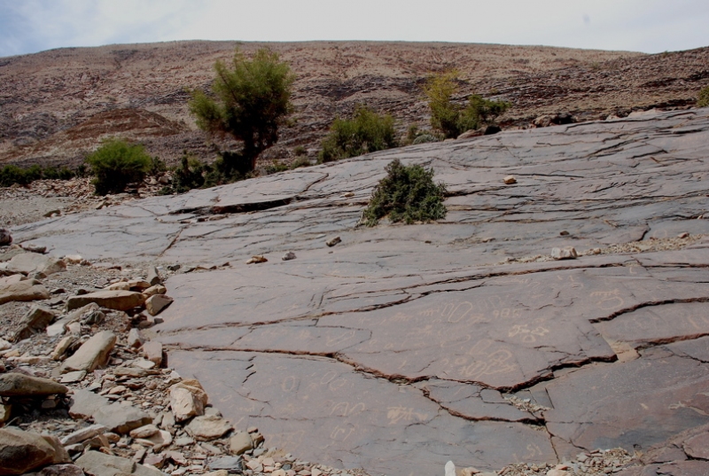Ce site aux 390 gravures recensées, et déjà signalé en 1875 par le Rabbin Mardochée lors d’un de ses voyages dans le Sud du Maroc, est situé au fond d’une vallée, en bas du jebel Taskala.