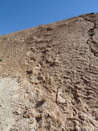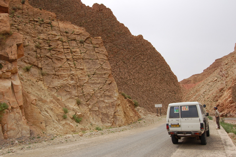 31°22,05’N - 06°10,29’W. Sur la droite de la route, qui suit l’oued Mgoun, probabilité de traces de dinosaures, 6 km avant d’arriver à Boutaghar.