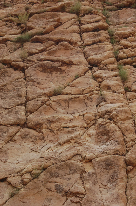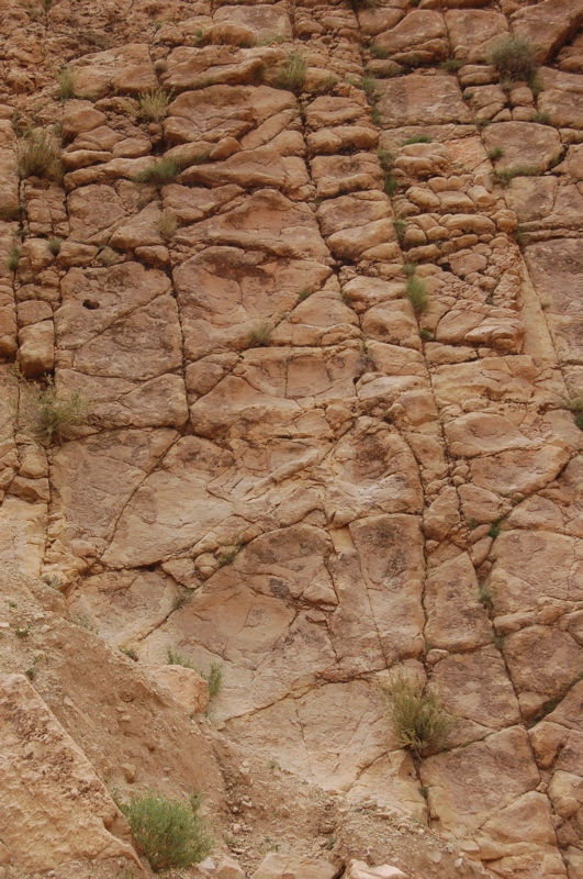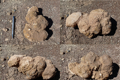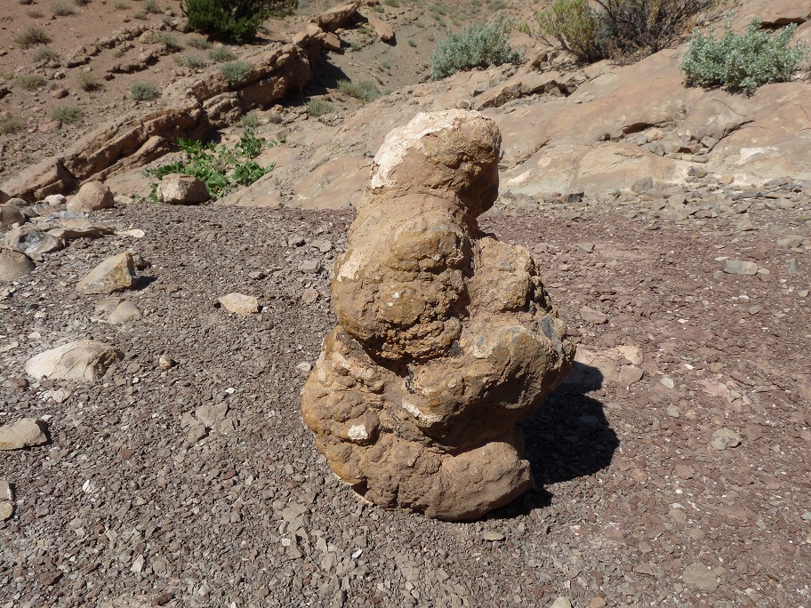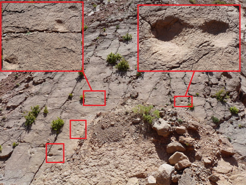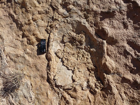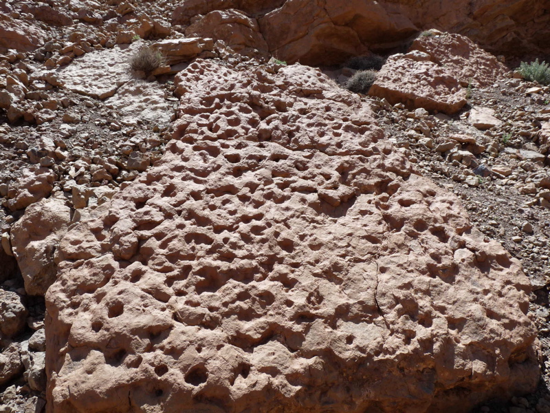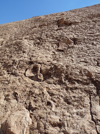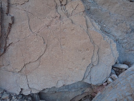 31°27,827'N - 06°09,623'W : Strate avec des empreintes de sauropodes, et à côté, probabilité de coprolithes.