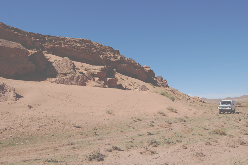 Km 4,4. 32°34,80’N - 01°10,68’W. Au pied de la falaise aux gravures.
