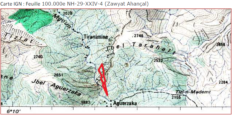 31°30,13'N – 06°07,29'W. 1732m. Accès à un petit vallon étroit et également escarpé, cap Est.