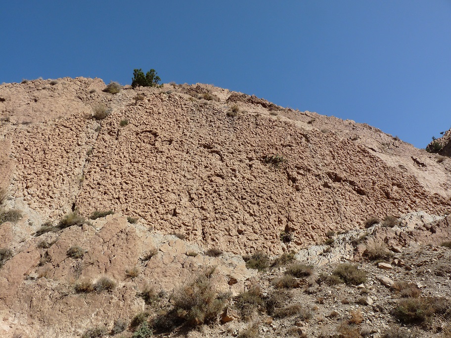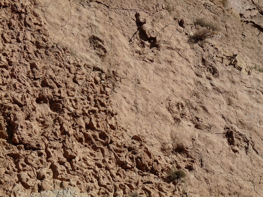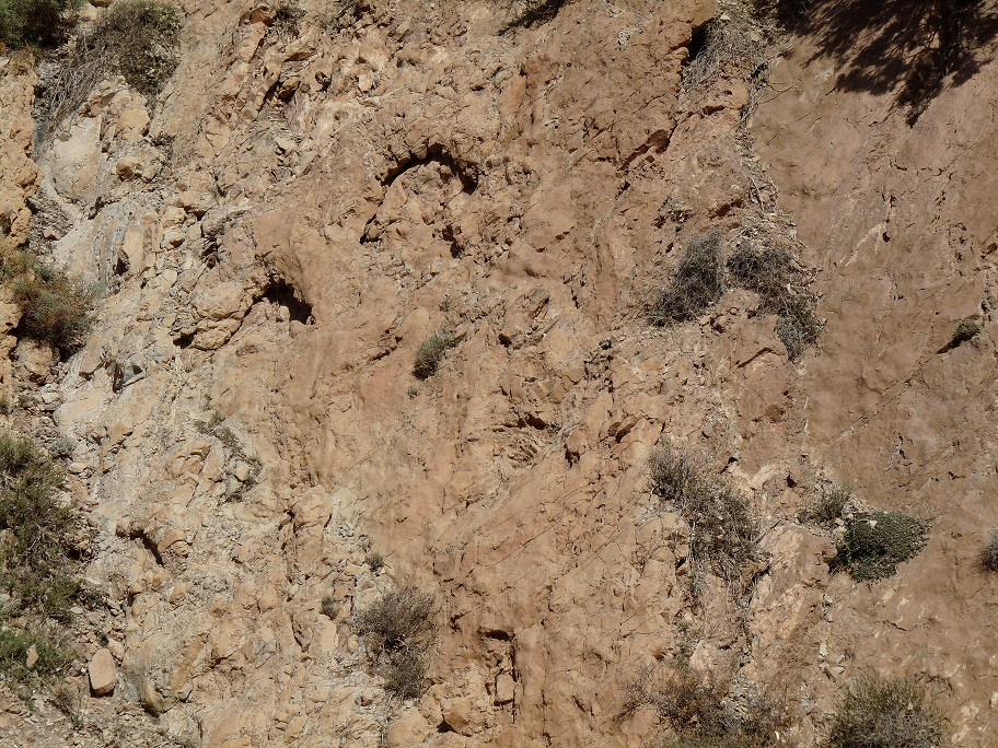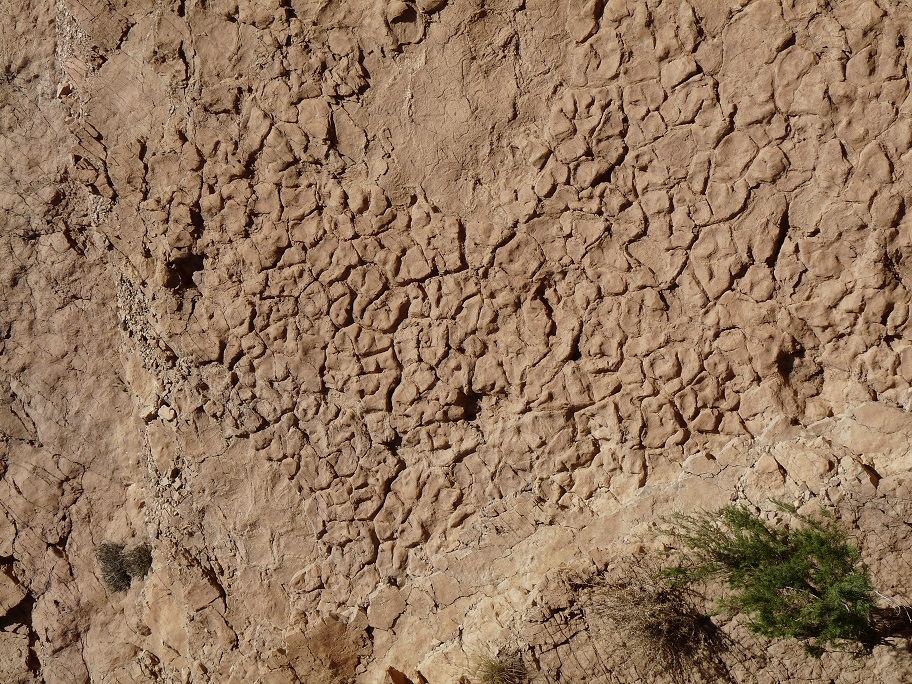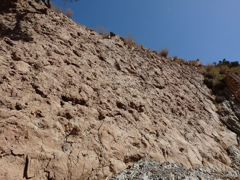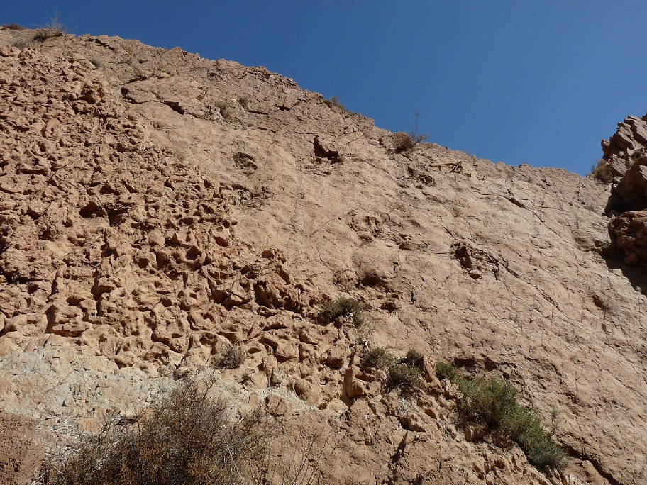 31°30,27'N – 06°07,01. Strate claire avec des empreintes comme des trous.