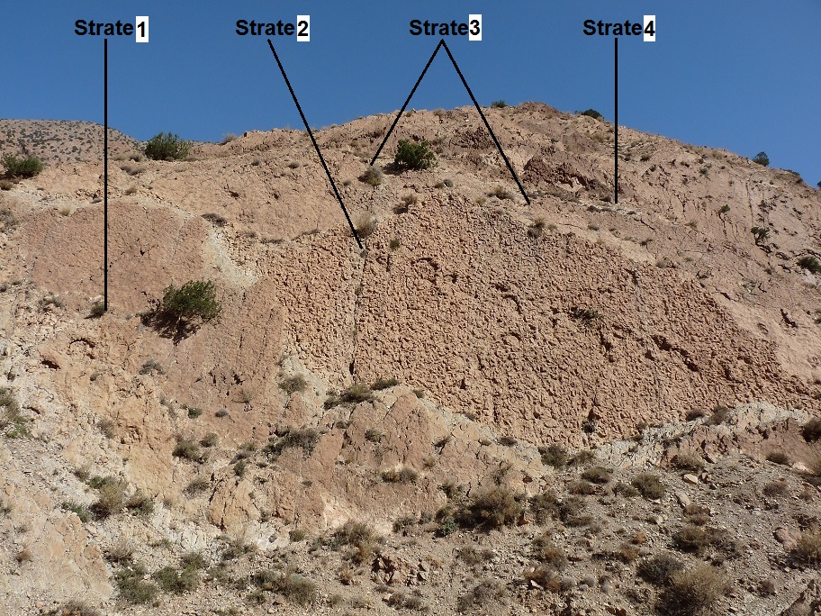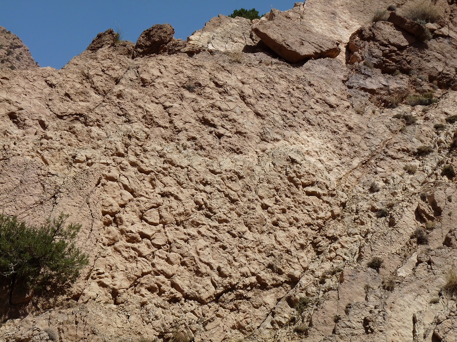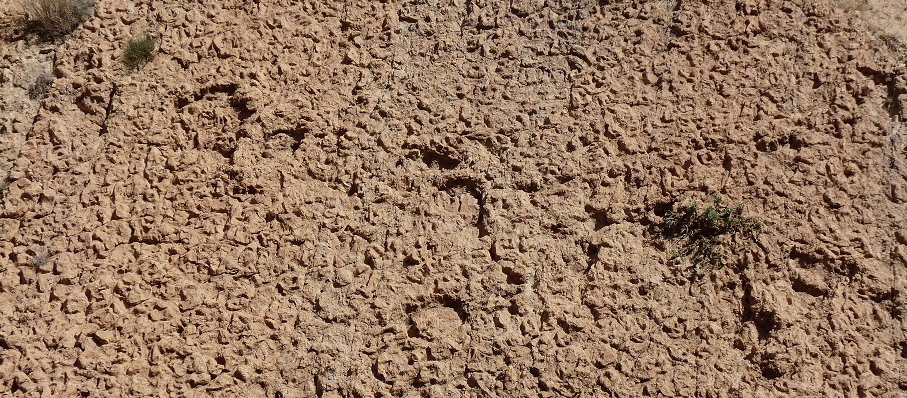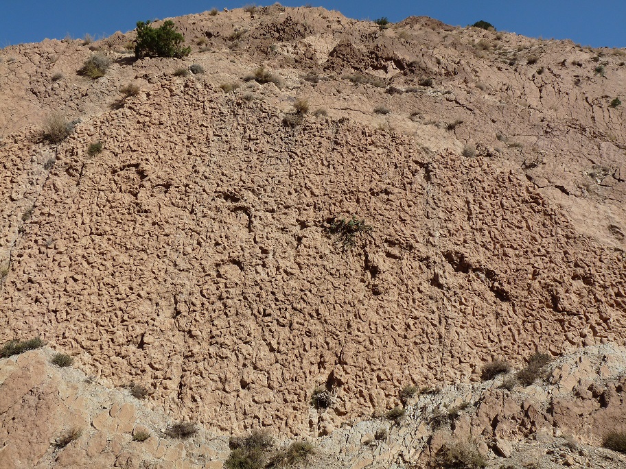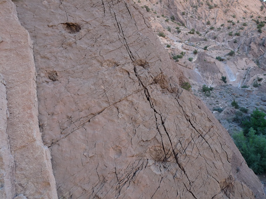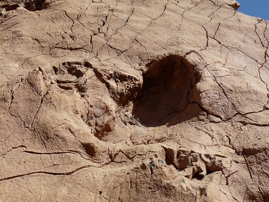 31°30,27'N – 06°07,01. Strate claire avec des empreintes comme des trous.