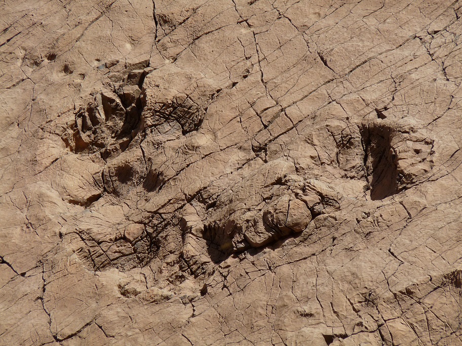 Exemple d'empreintes très allongées, expliquant une glissade de dinosaures sur un substrat très mou et glissant.