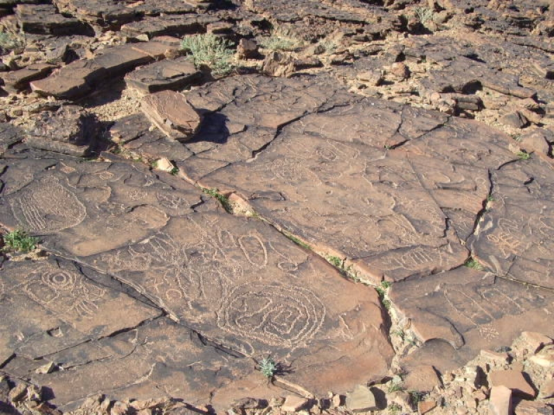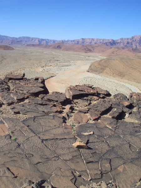 Le site rupestre d’Imaoun, un des plus étranges du Sud marocain, est situé à l’Ouest de la vallée, au début de la falaise de la cuesta d’Imaoun, en bordure de l’oued Akka où, sur la bordure supérieure, se trouve un très grand nombre de gravures à thème géométrique avec quelques figures zoomorphes.