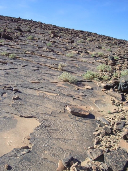 Signalé par A. Simoneau, revisité en 1993 (une gravure sur le site en fait foi), une étude a été publiée en 1999 par Susan Searight (Cahiers de l’AARS, n°5, avril 1999) qui signale que plus de 700 gravures se répartissant sur deux thèmes, bovidés et figures géométriques, ont été répertoriées sur le jebel. En 2004, Annie et Gérard Garcin présentaient dans les Cahiers de l’AARS n°9, un intéressant reportage photographique.