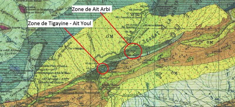 31°25,90'N – 06°00,00'W. Altitude 1587m. Empreintes de sauropodes et autres petites peu indentifiables.