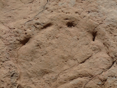 31°25,90'N – 06°00,30'W. Altitude 1585m. Deux empreintes de sauropodes.