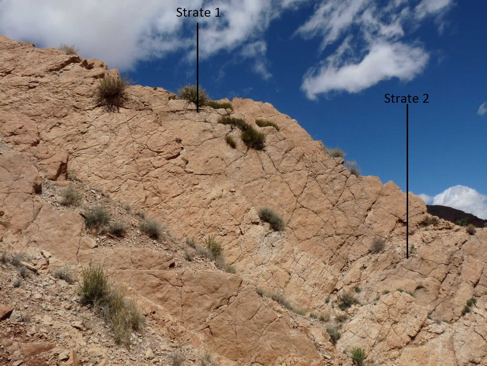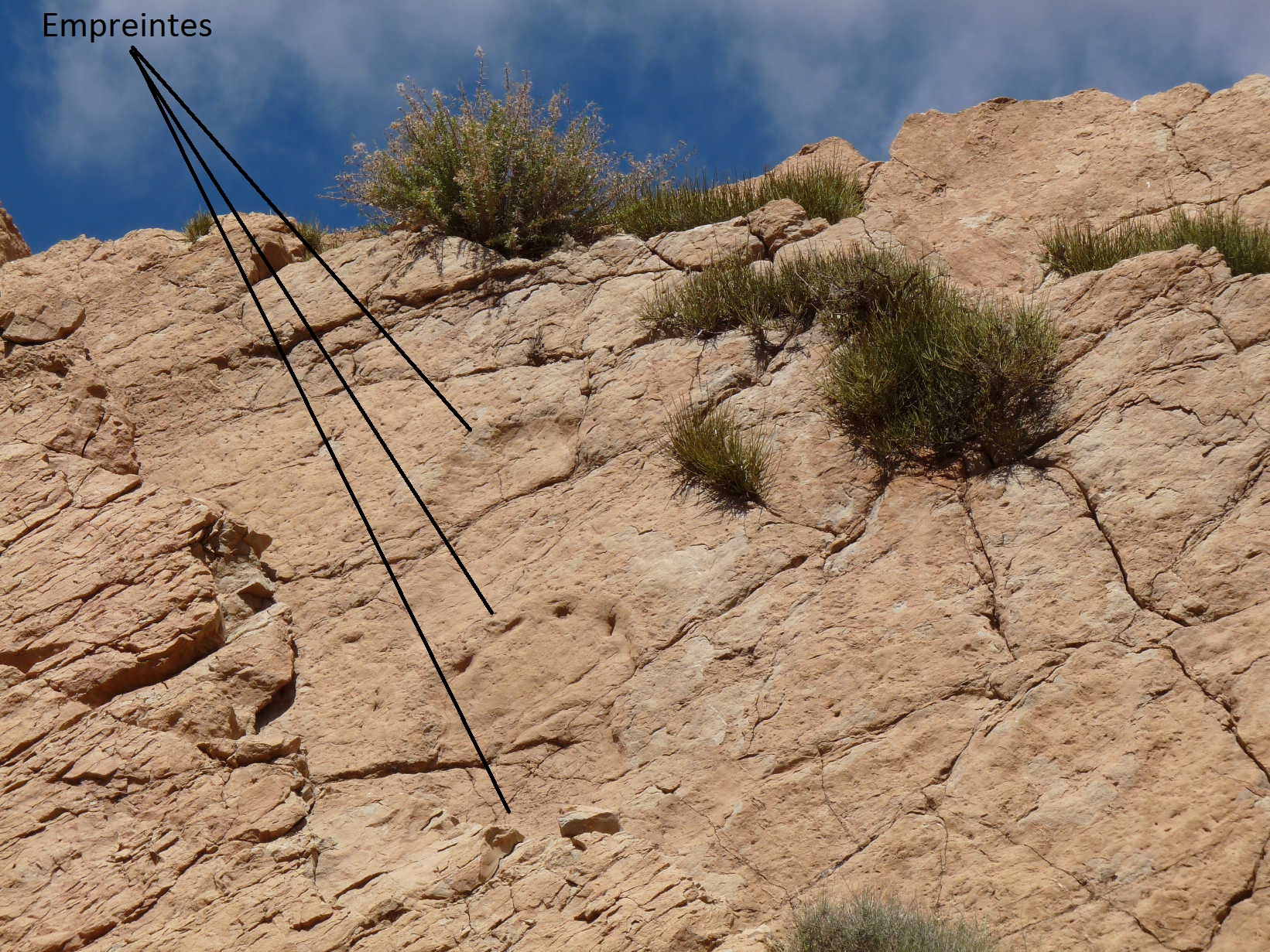 31°25,91'N – 06°00,12'W. Altitude 1600 m. Empreintes de sauropodes.