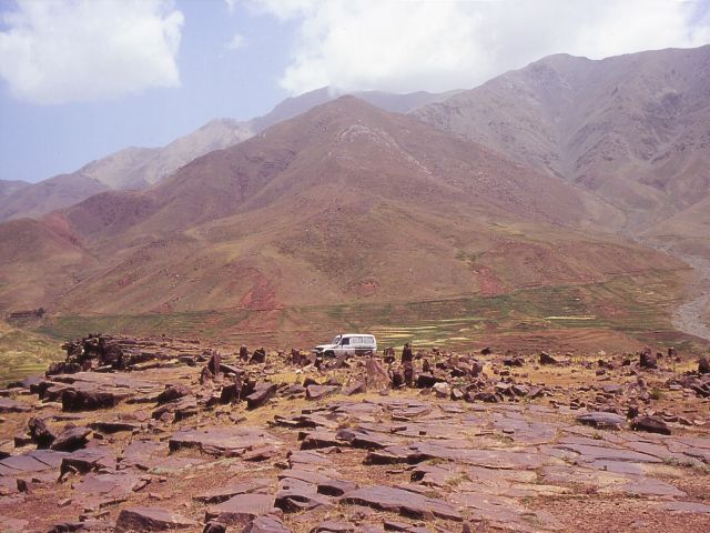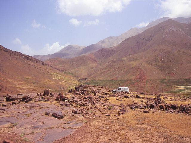 31°18,89’N - 07°33,53’W. 2220 m. Au pied des azibs n’Ikkis où se trouve la station de gravures rupestres de Talat n’iisk (vallon de la corne, en berbère).