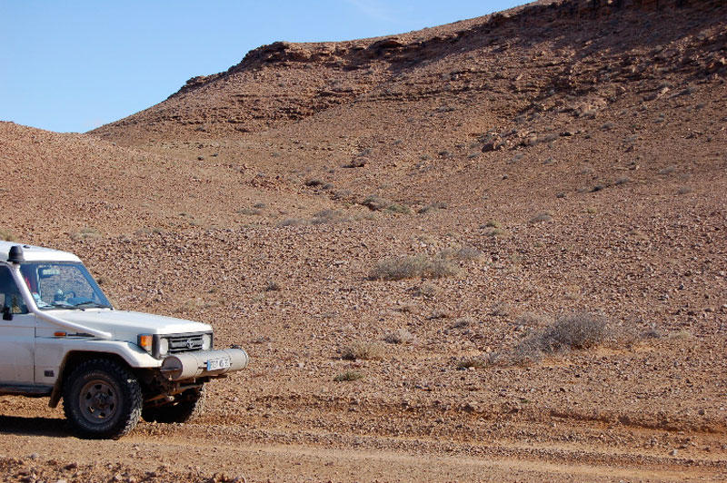 Km 7,6. 27°57,296’N - 10°47,505’W. Parking des voitures.