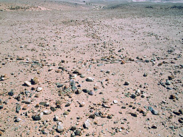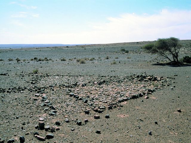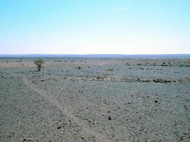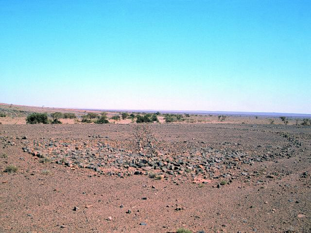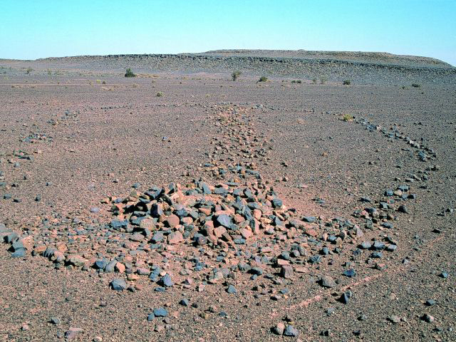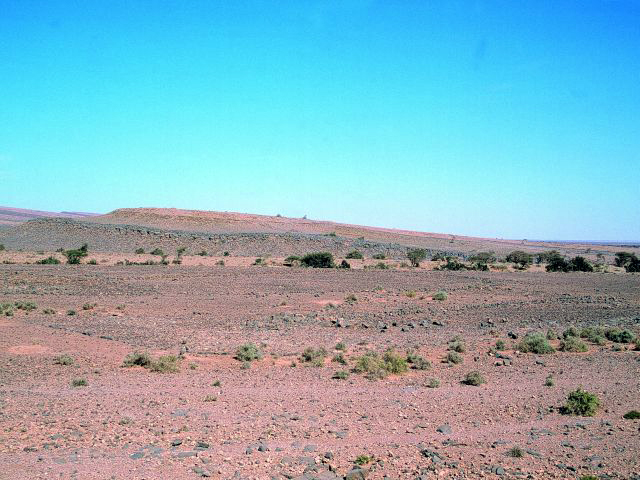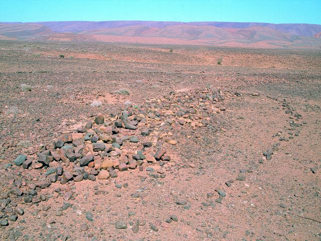 28°11,17’N - 10°14,63’W. AM avec dallage important et petit tumulus arasé en tête, vu sous un autre angle.