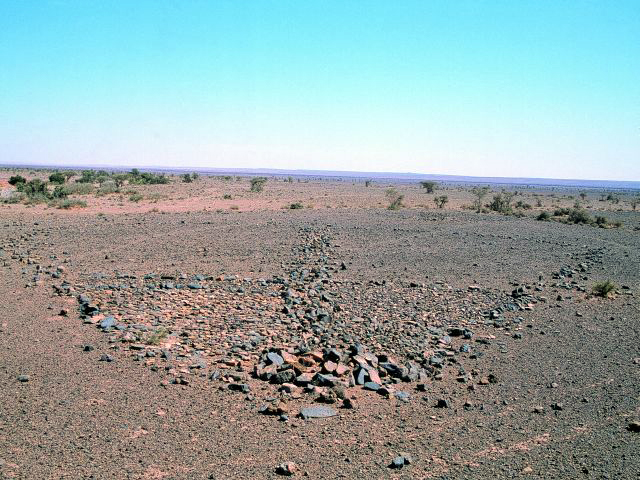Située au Sud du jebel Ouarkziz, cette nécropole de 15 tumulus dont la forme au sol est nommée par les spécialistes  "en ailes de mouche” (AM), sauf deux qui sont des monuments à antennes (MA), reste une belle surprise pour cette région où, jusqu’à sa découverte par Jacques Gandini en 2002, rien n’avait été signalé. En fait certains monuments, par leur forme plus ronde, peuvent se rapprocher de ce que ces mêmes spécialistes nomment : “à trou de serrure” (TS) ou lobés, sans toutefois reprendre la forme exacte déjà décrite et signalée pour l’oued Chbika. Pour ce type de monument, le mot couloir est employé quand l’enceinte est divisée en deux, goulet quand le passage se termine en cul-de-sac ou sur un tumulus.