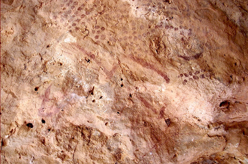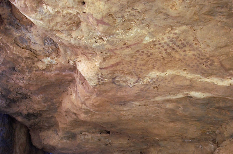 - 30°02,921’N - 06°21,575’W. Abri sous-roches avec un mouchetis de points ocre rouge