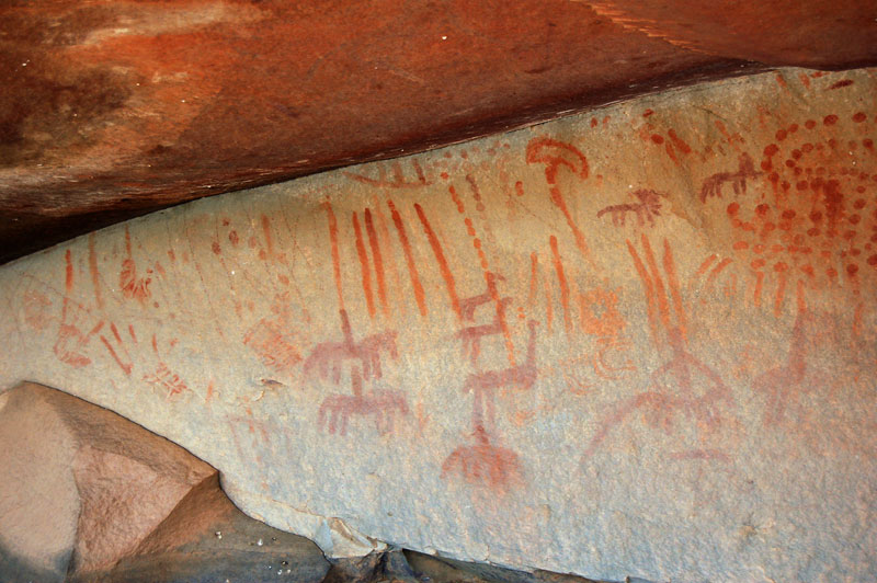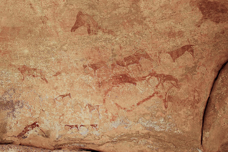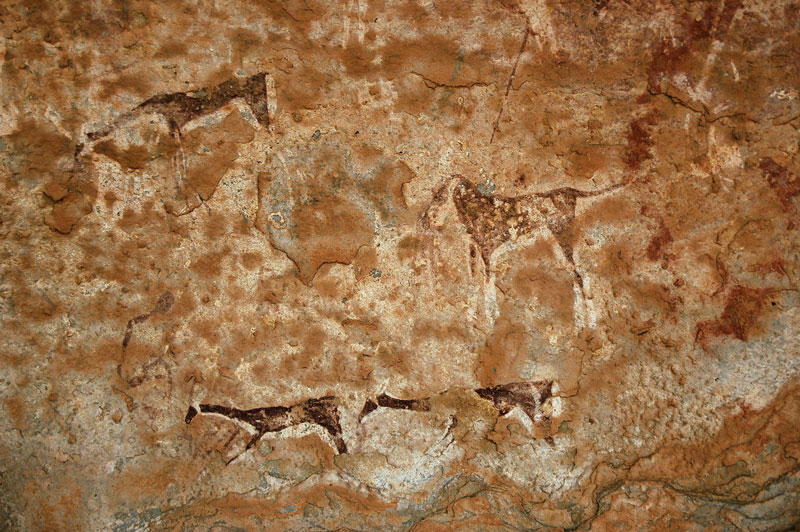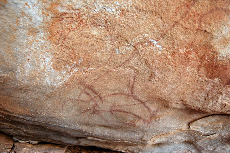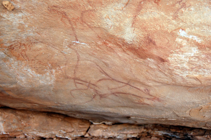 Lors de notre première visite en 2006, cet ensemble de peintures n’avait jamais été signalé. Les bergers de la région, toujours à l’affût de ce qui bouge, nous ont dit n’avoir jamais remarqué des véhicules stationnés et des touristes prospectant dans cette petite vallée d’oued.