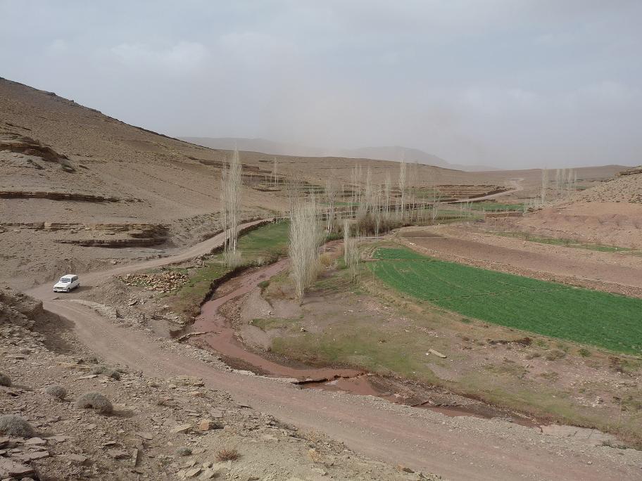 32°11,79'N - 05°38,61'W. 2281m. Auberge Tislit, vallon à gauche, à pied par la rive droite.