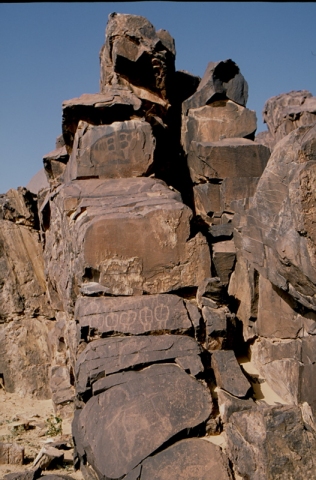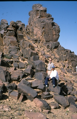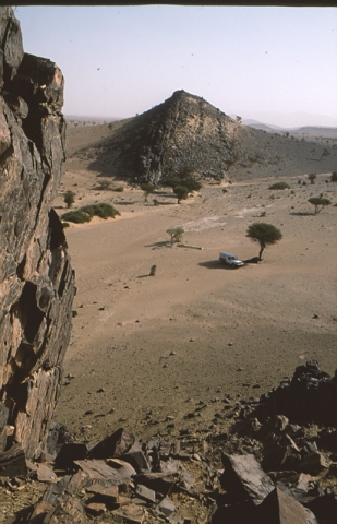 Anou el Hadj, puits aménagé (eau à 15 m) au milieu d’un foum encadré par deux éperons rocheux dont celui aux gravures (à l’Ouest) est très spectaculaire. Anou el Hadj : en berbère, puits du pèlerin (à la Mecque).