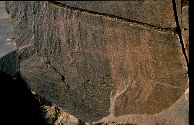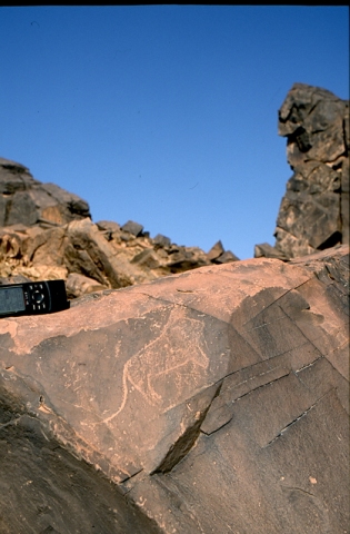 Sur un rocher-dalle, intéressante gravure représentant un homme brandissant une hache (type libyco-berbère de l’Atlas), définition un peu délicate...