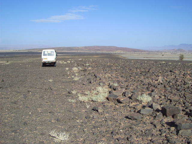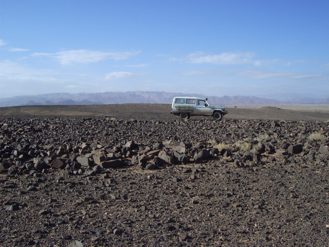 29°54,50’N - 07°28,40’W. Grande concentration de tumulus sur une terrasse inférieur.
