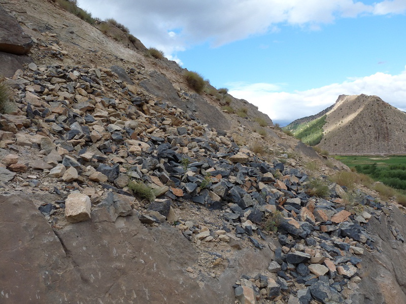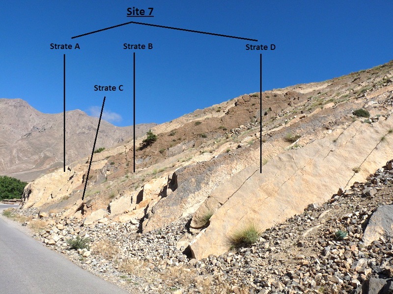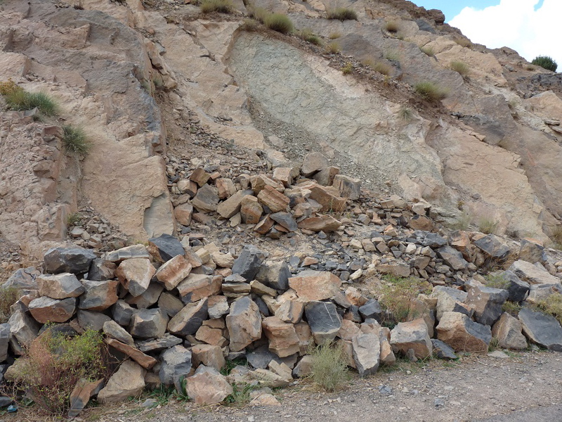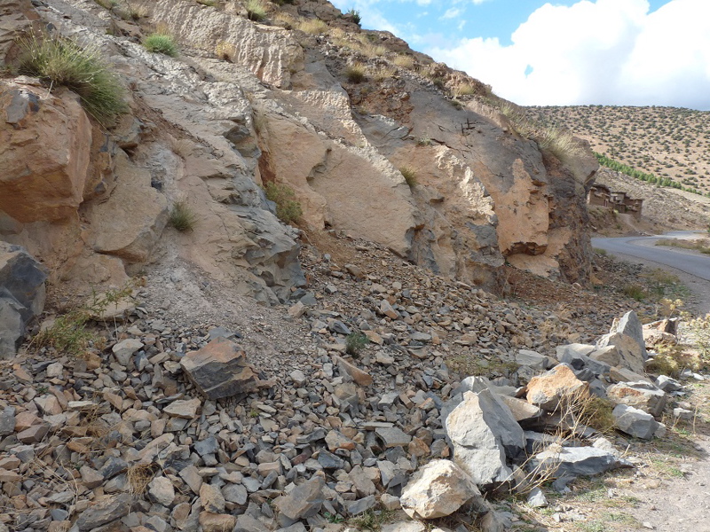 On remarque que certaines strates de ce site, situées au bord de la route, servent de carrière de pierre.