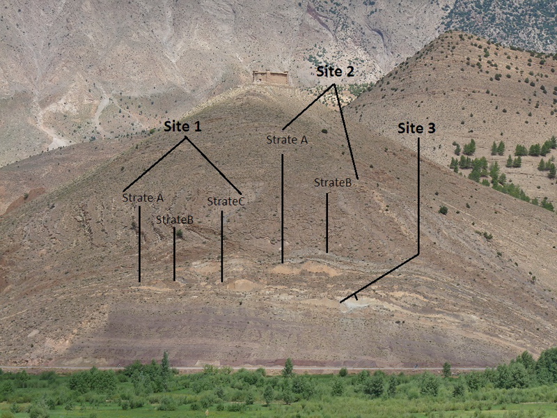 Tout d'abord des précisions sur le précédent site décrit, celui d'Igherm Sidi Moussa, avec la situation des strates où se trouvent les empreintes.