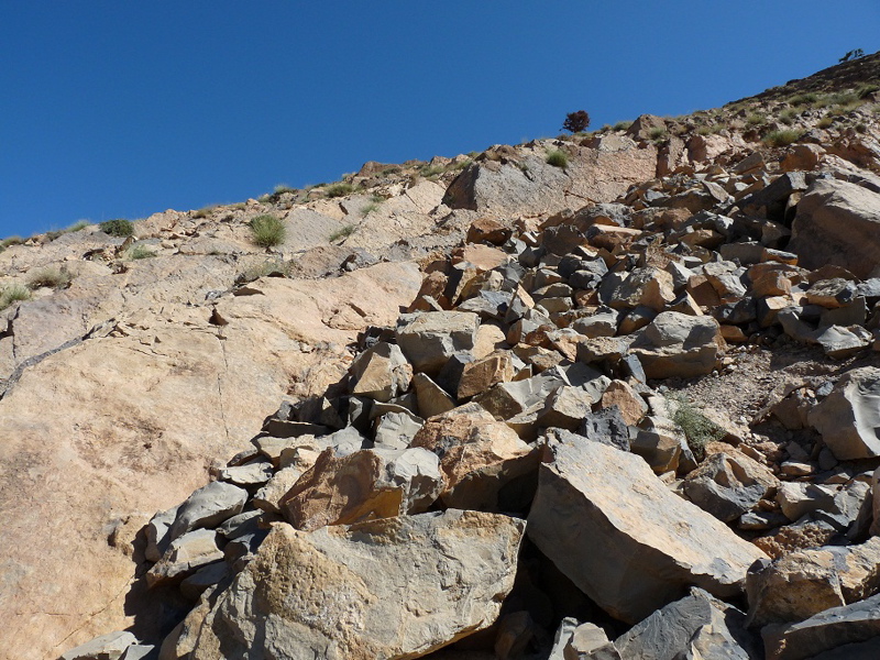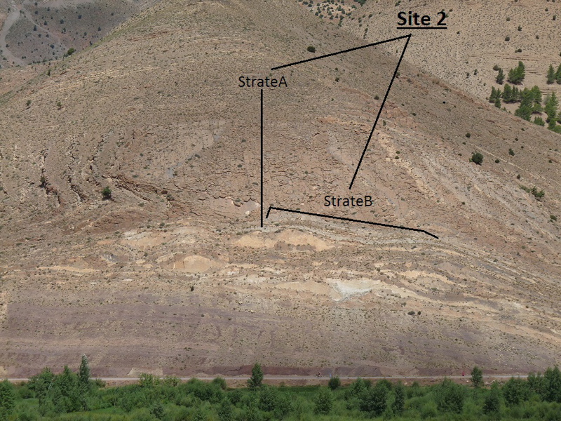 Notre ami Hassan Yamani, qui se passionne pour la recherche des traces de dinosaures est retourné au printemps 2011 dans la vallée des Aït Bougmez pour essayer de compléter ce qu'il y a déjà trouvé en plus des sites à empreintes déjà connus dans la vallée. Heureux homme, il a trouvé un autre site sur les flancs du Jebel Tabant.